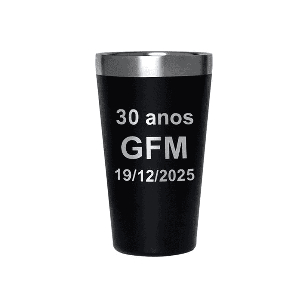 O copo térmico estilo Stanley personalizado oferece um presente funcional e sofisticado. Carrega a marca e a data comemorativa, reforçando a identidade da GFM.