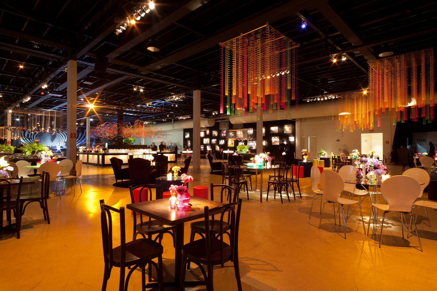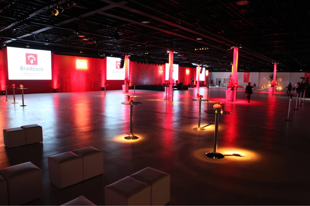 Para fotos e compartilhamentos, um espaço instagramável personalizado com o logo da Lello e a frase “Conectados pelo que construímos juntos” destaca-se como cenário exclusivo. A decoração valoriza o estilo rústico-contemporâneo do local, distribuindo as áreas de forma funcional: lounges de descanso ao lado da pista de dança, bistrôs próximos ao bar e pontos de destaque para sobremesas, garantindo fluidez e uma experiência memorável em cada detalhe.
